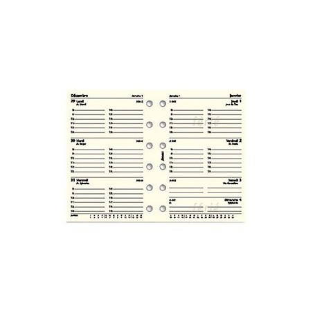 De janvier à décembre. A l'horizontal. Papier ligné. Recharge Filofax.