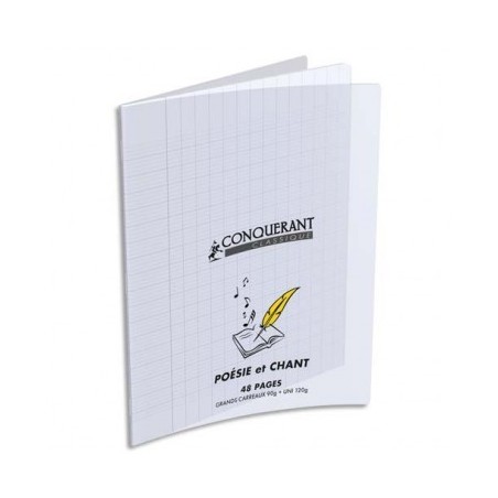 CONQUERANT Cahier de poésie C9 90g, 24 x 32 cm, 48 pages seyès, couverture polypropylène incolore