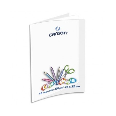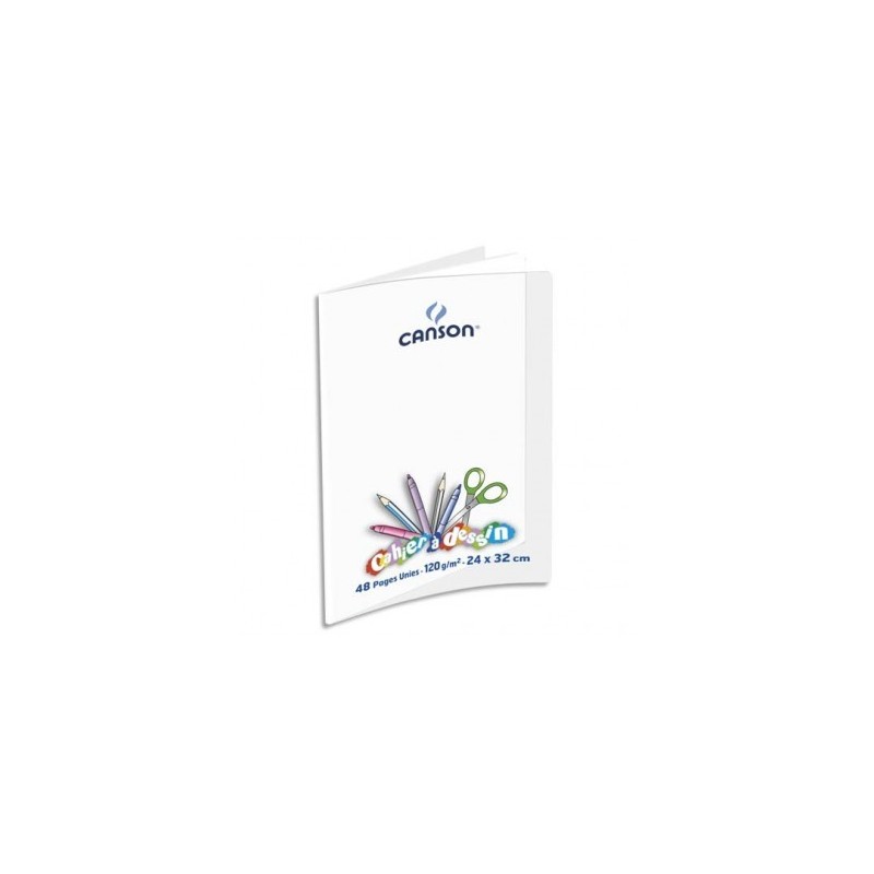 Couverture polypropylène incolore. Format 24 x 32 cm. 48 pages unies, 120g. Cahier de dessin.