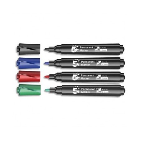 5 ETOILES Pochette de 4 marqueurs permanents pointe ogive encre assortie à base d'alcool