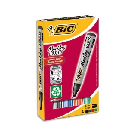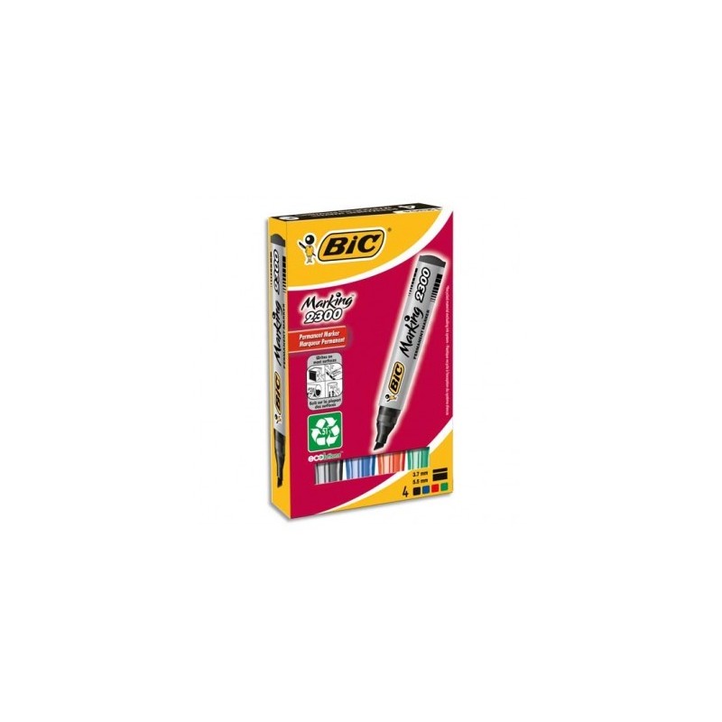 BIC Pochette de 4 marqueurs permanents pointe biseautée encre à base d’alcool 4 couleurs assorties 2300