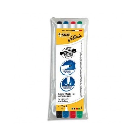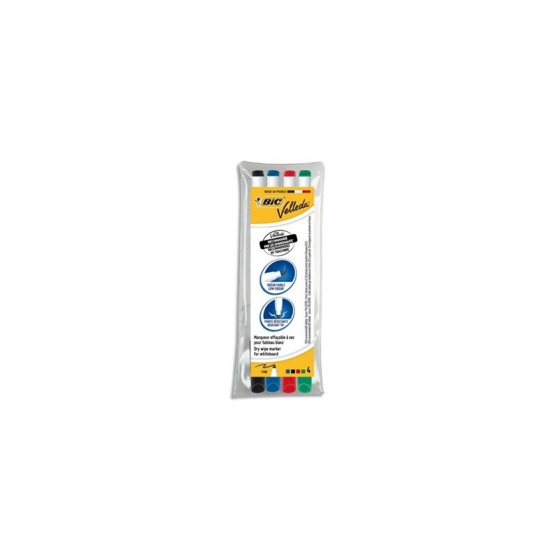 BIC Pochette de 4 Feutres effaçables à sec pointe fine encre alcool 4 couleurs VELLEDA 1721