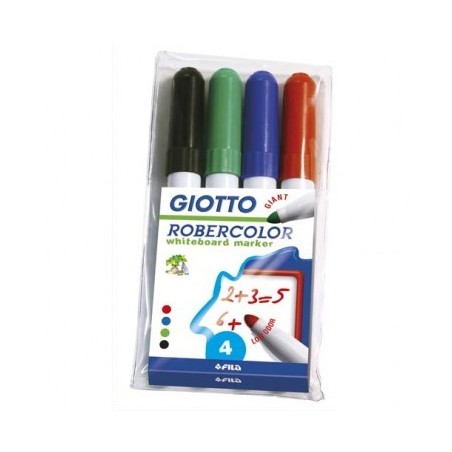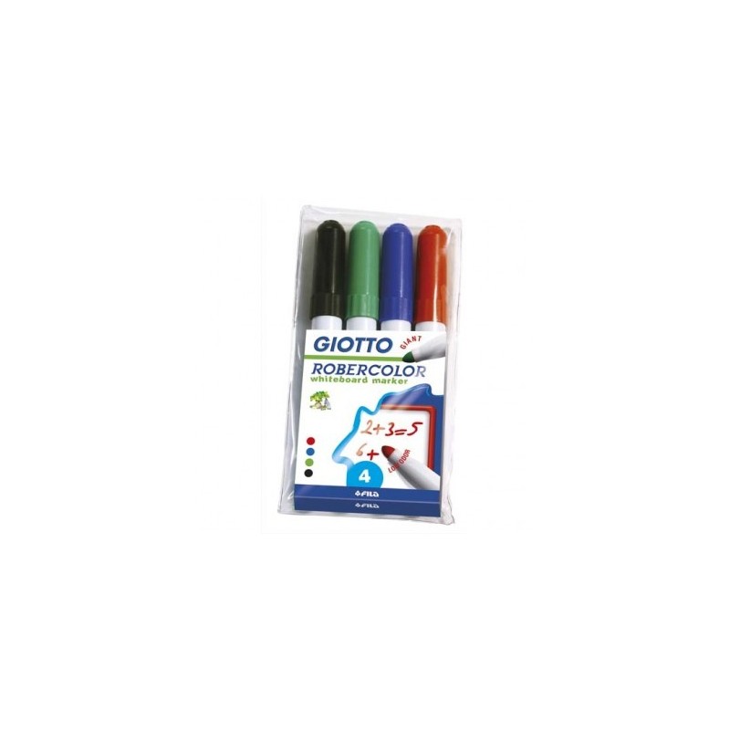 GIOTTO Pochette 4 marqueurs effaçables pointe ogive 7 mm, bleu, rouge, noir, vert. Odeur neutre