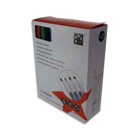 Boite de 12 couleurs assorties : 3 noir, 3 bleu, 3 rouge et 3 vert
