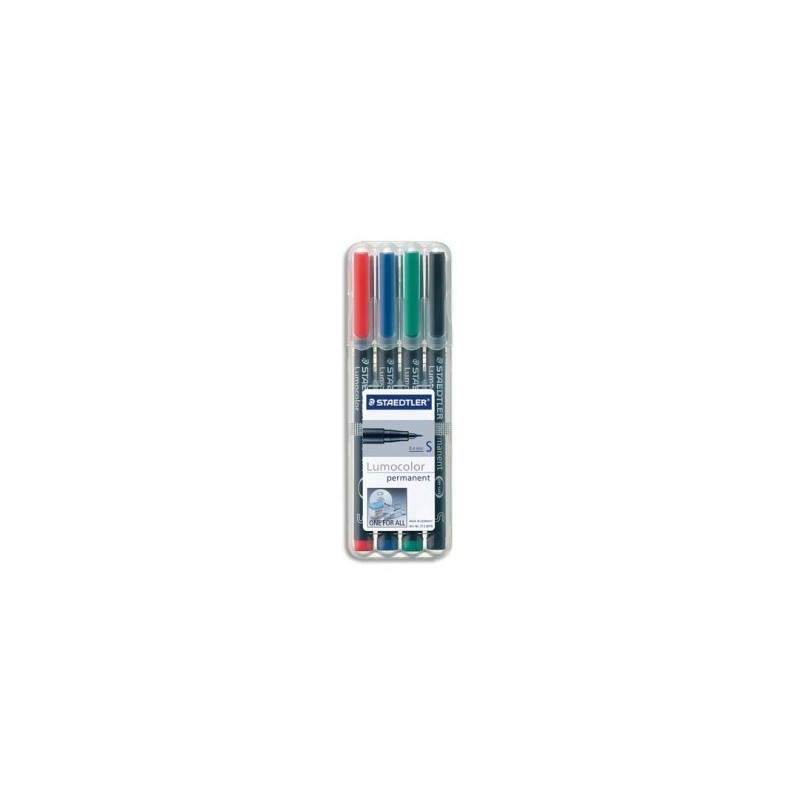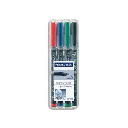STAEDTLER Pochette de 4 feutres rétroprojection pointe super fine encre permanente assortis LUMOCOLOR