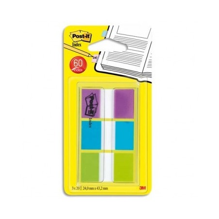 POST-IT Set de 60 index standards dans un dévidoir transparent 2,54 x 4,4 cm Coloris assortis
