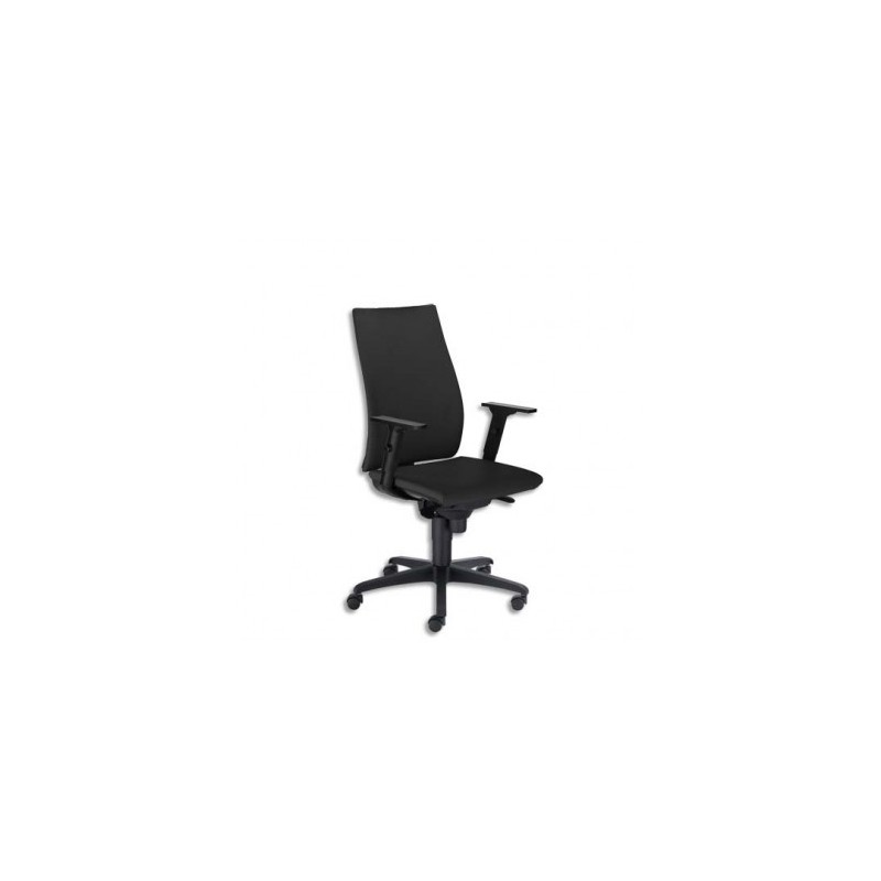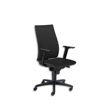 Mousse haute densité 45 kg/m3. Tissu polyfibre. Coloris noir. Piétement nylon 5 branches, 5 roulettes. Dossier et assise réglable en hauteur. Mécanisme synchrone à contact permanent, réglable en intensité et blocable multipositions.