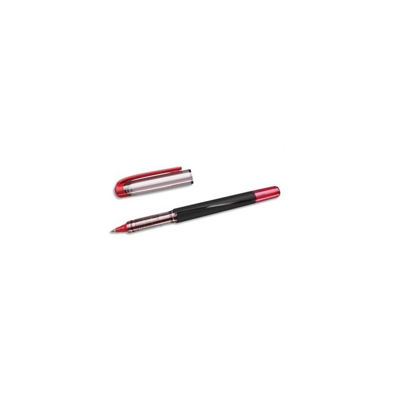 Pointe métal. Encre liquide. Régulateur de débit d’encre. Clip plastique. Corps avec caoutchouc à la couleur de l’encre. Ecriture moyenne.